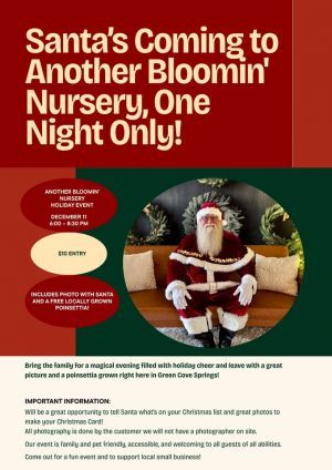 We are excited to announce the first ever Another Bloomin’ Christmas! This event will be at Another Bloomin Nursery on December ...