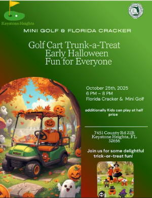 Halloween Trick-or-Treat at Keystone Heights Mini Golf & Florida Cracker Oyster Bar & Grill! Join us Saturday, October 25th from 6–8 ...