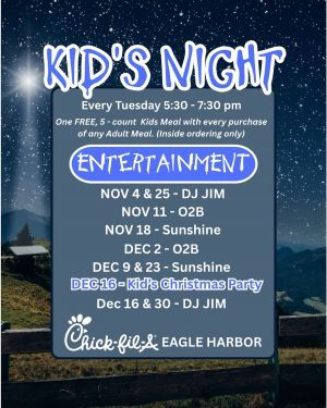 One FREE 5 count Kids Meal with every purchase of ANY large adult meal. (Inside ordering only)