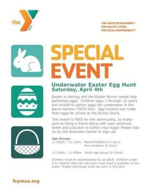 Come join us for an underwater Easter egg hunt at Barco-Newton Family YMCA's pool! Children will have the opportunity to ...